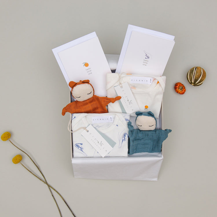 With a hint of your chosen clementine and blue shrimp prints - two beautiful, in-house designed cards (blank inside) will accompany your gift box. Don't forget to add your special messages at checkout and we will do the rest! Sustainably sourced, carbon-neutral.